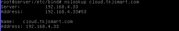 - Selanjutnya lakukan perintah nslookup cloud.tkjsmart.com dan kalau benar akan muncul tulisan seperti gambar di bawah